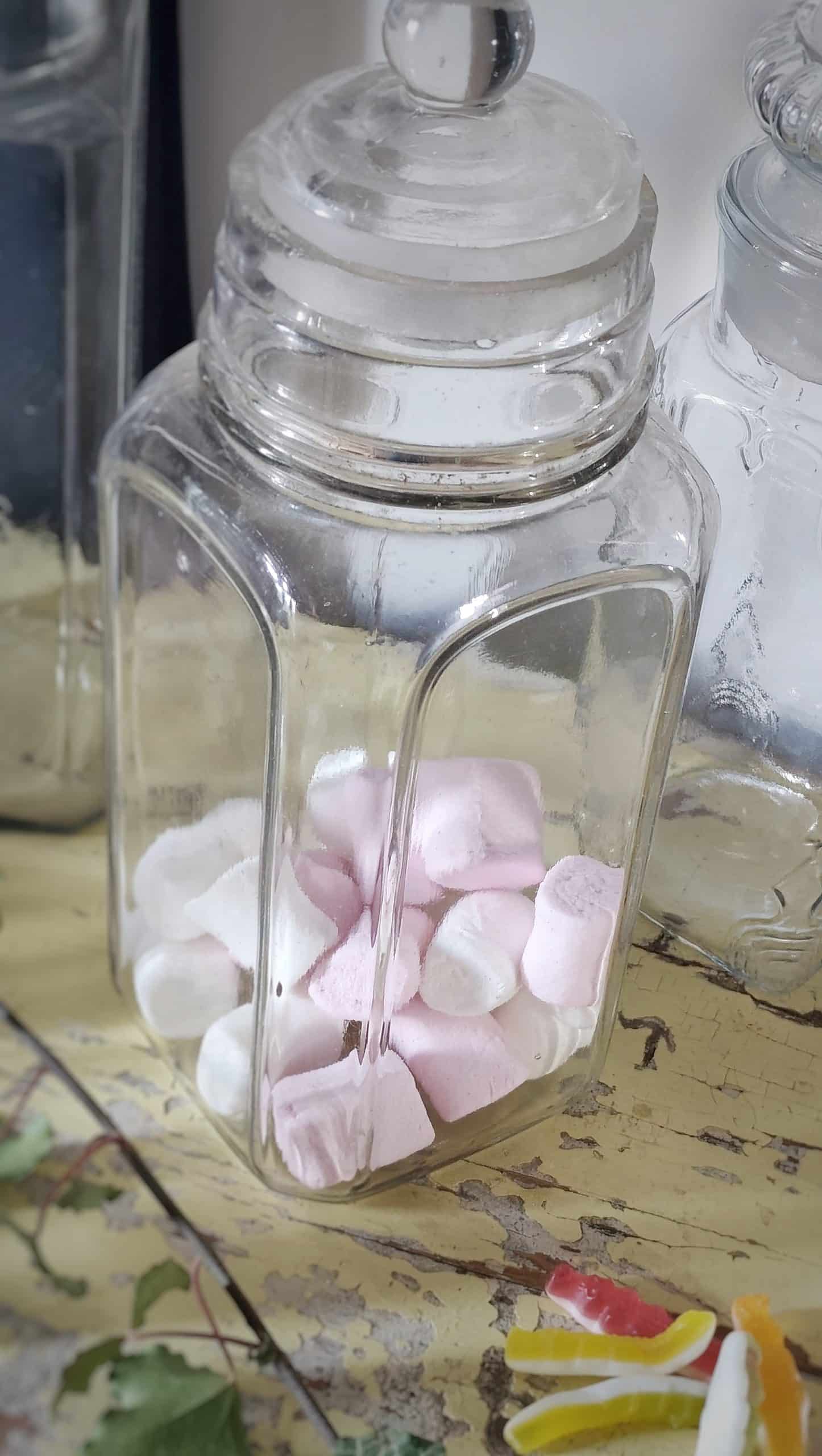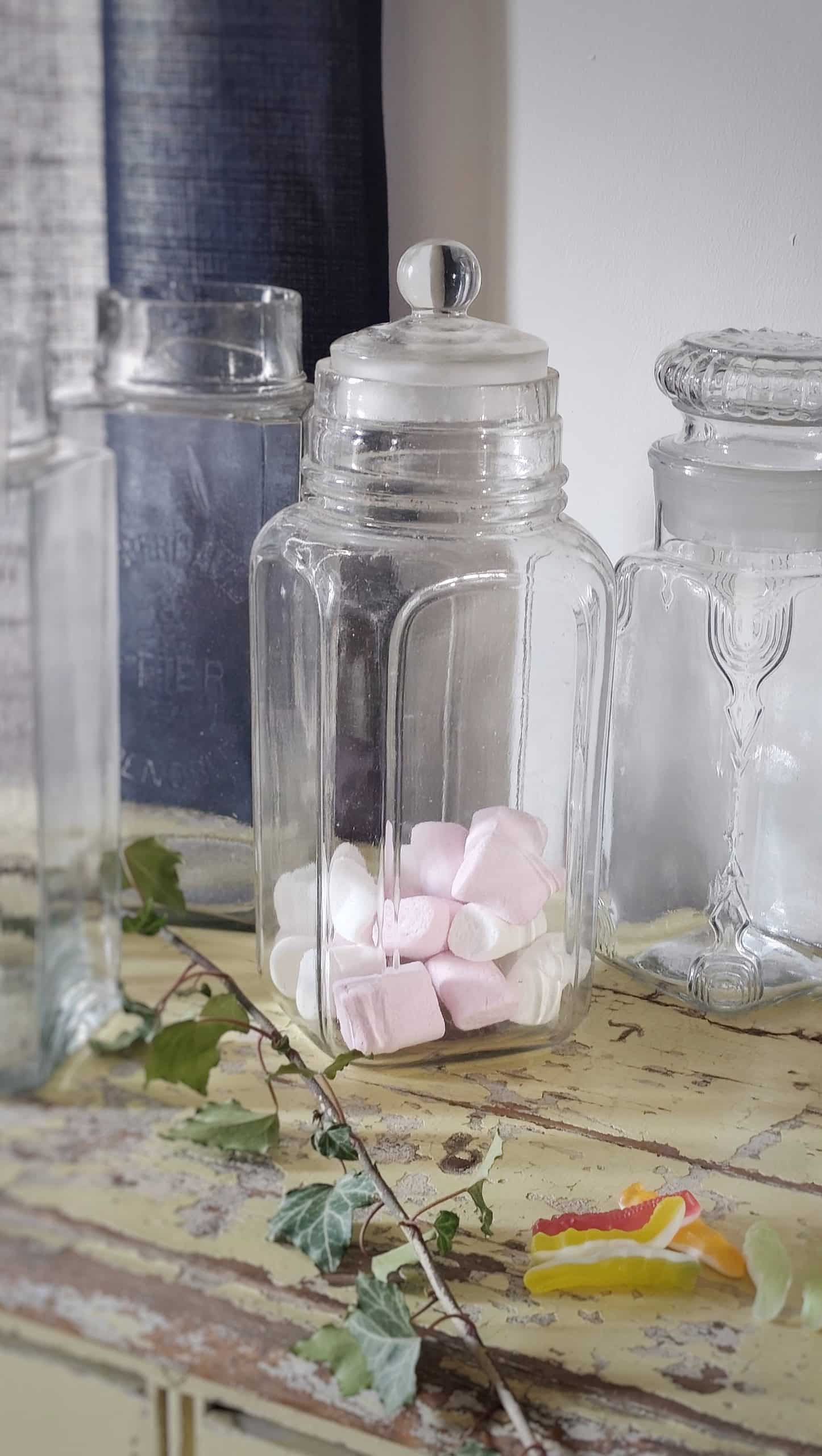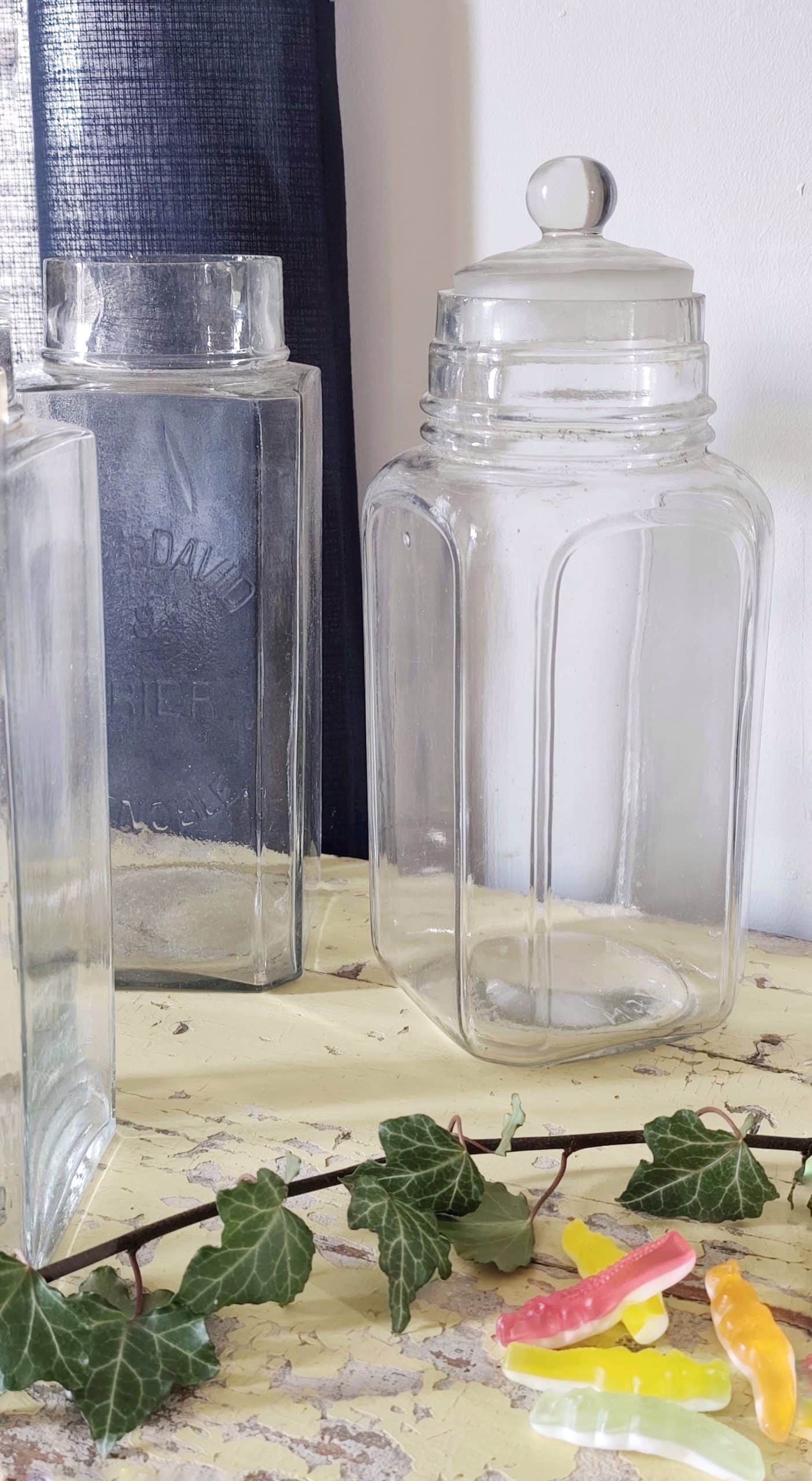 Ancien bocal à confiseries de boulangerie en verre avec son capuchon. Une pièce datant des années 30-40 et marquée au fond.