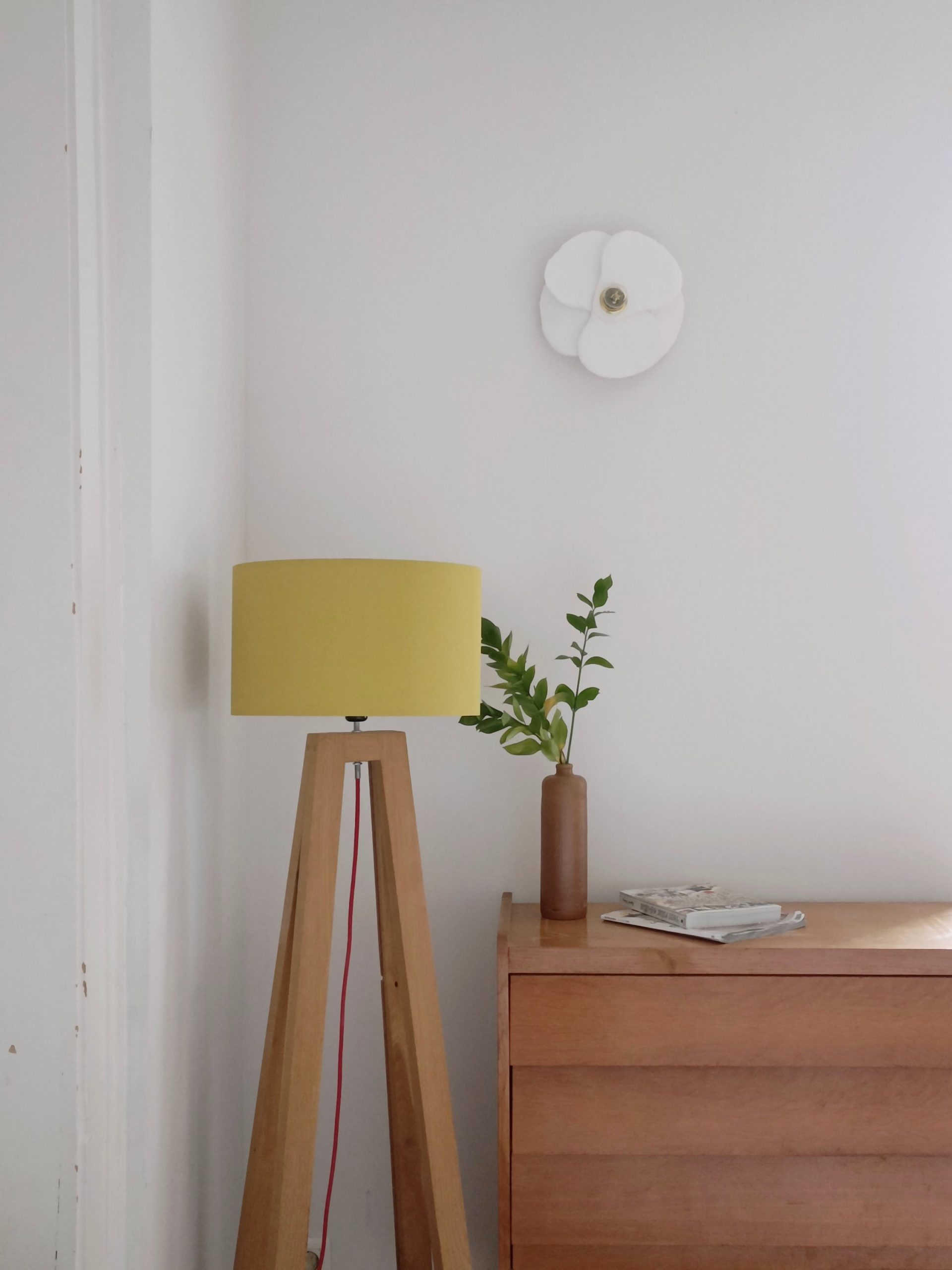 Douille laiton E27. Vendue avec une ampoule led à filaments s’apparentant aux pistils de la fleur, donnant ainsi, la touche finale à cette création.