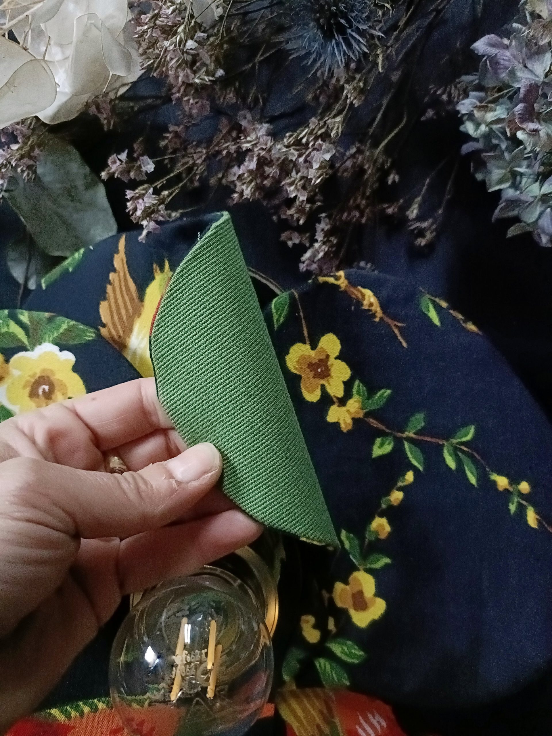 Applique fleur « Soir au jardin » est une création réalisée à partir de tissu coton vintage bleu marine aux motifs floraux.
