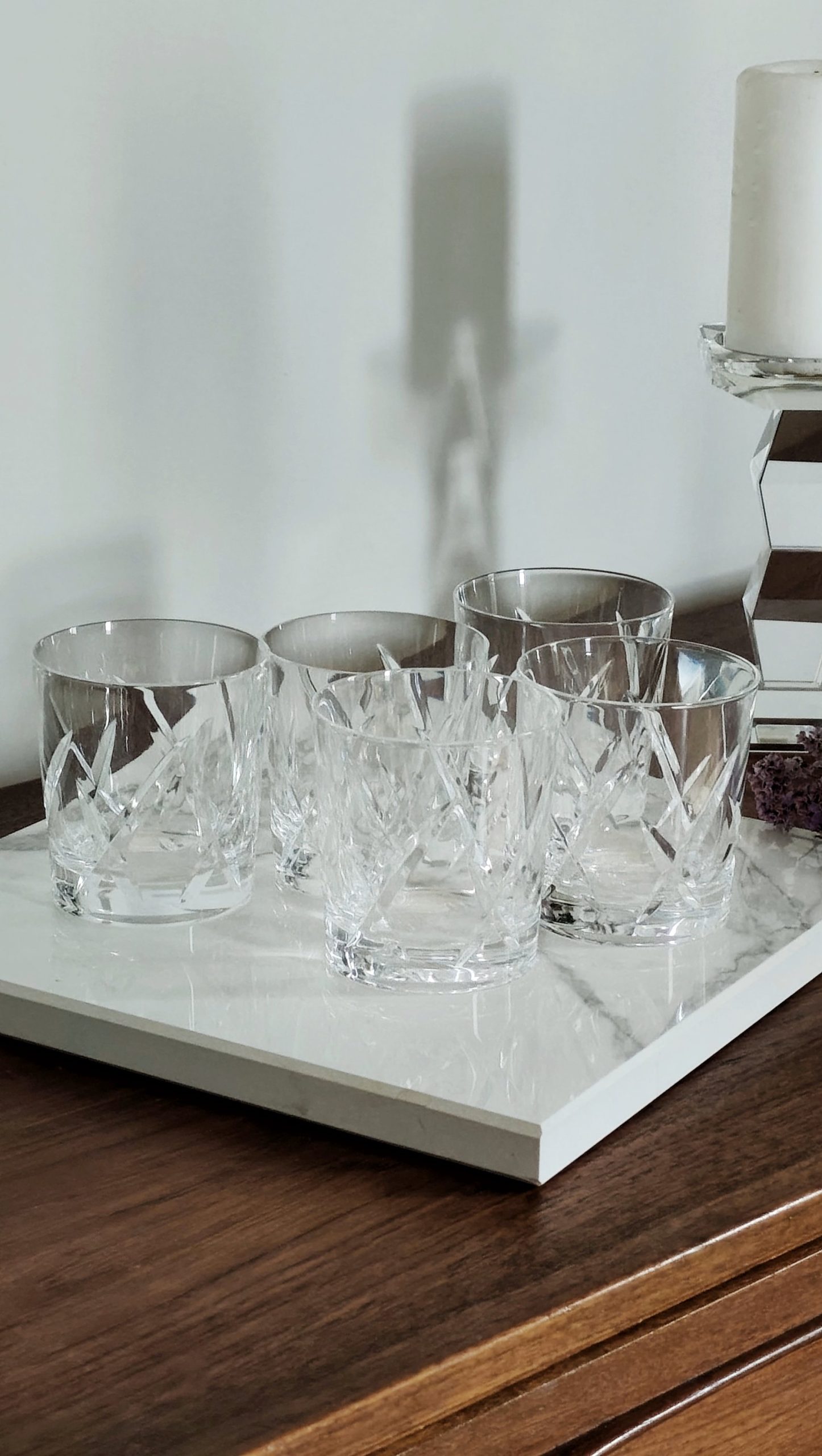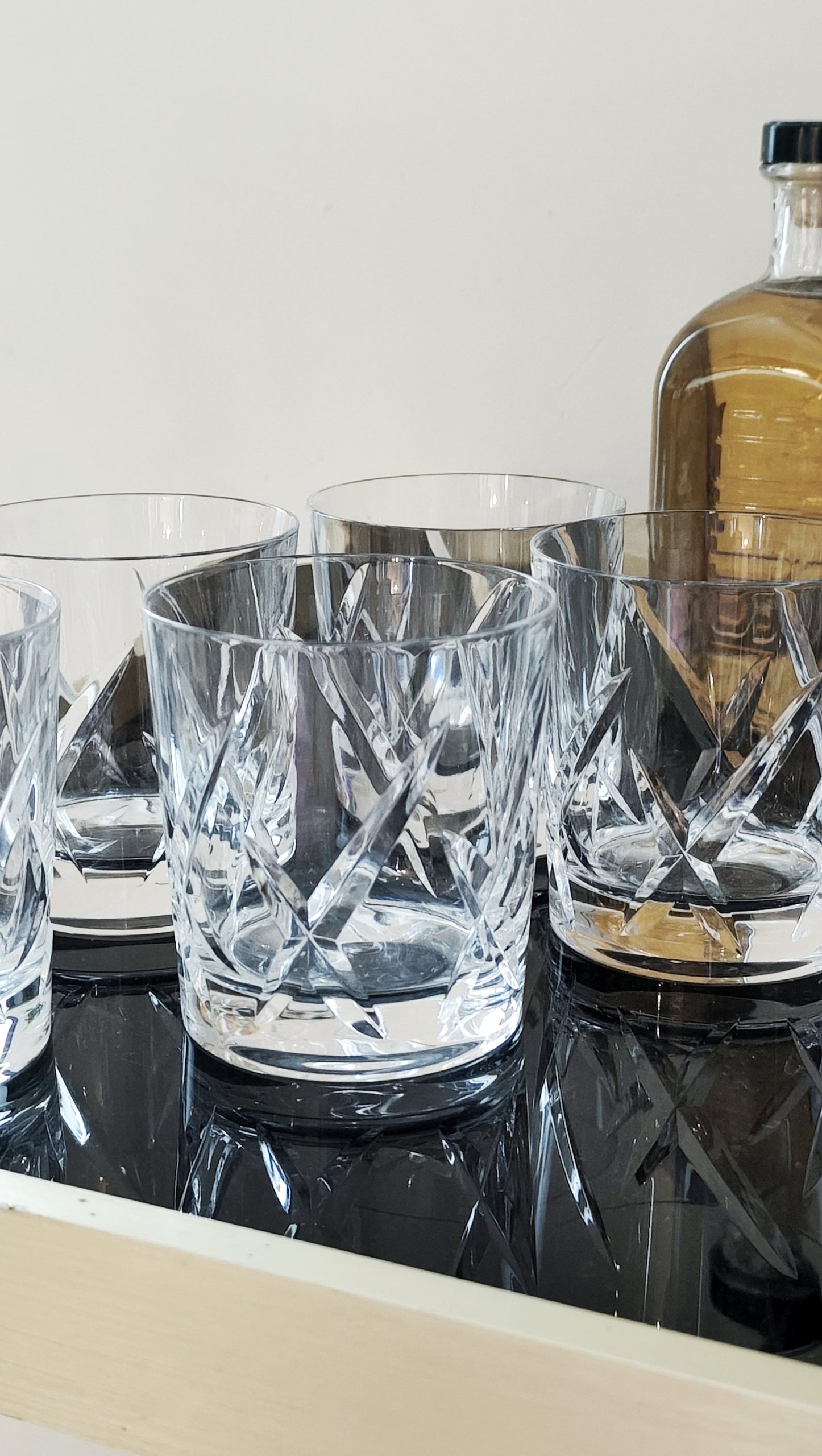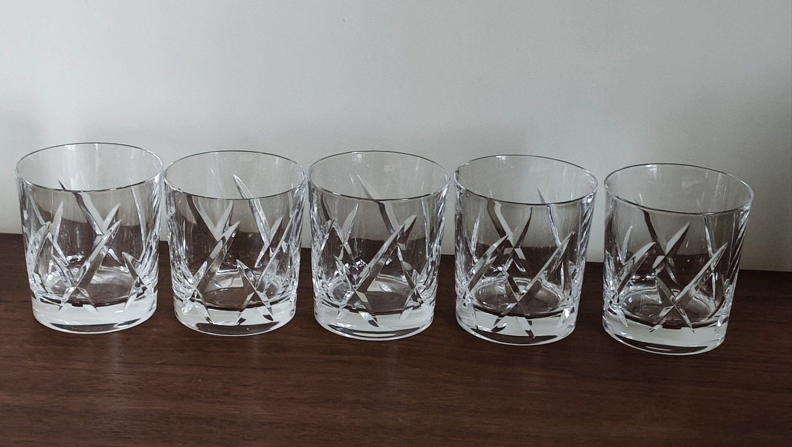 Très joli lot de 5 anciens verres à whisky en cristal finement taillé.
