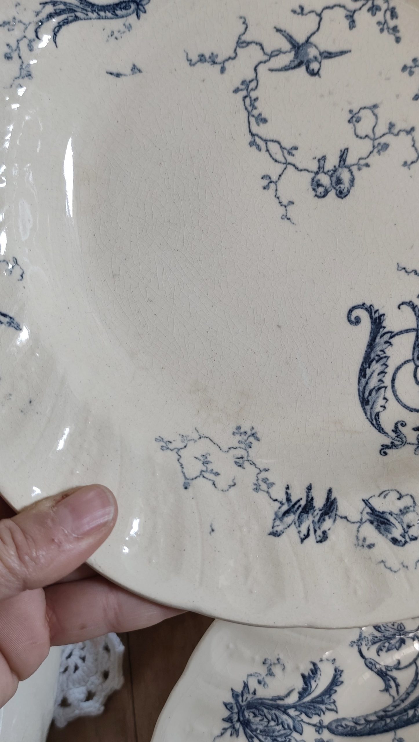 Ces imperfections n’altèrent en rien le charme et l’authenticité de ces assiettes anciennes ; toutes sont visibles et mises en évidence sur les photos.