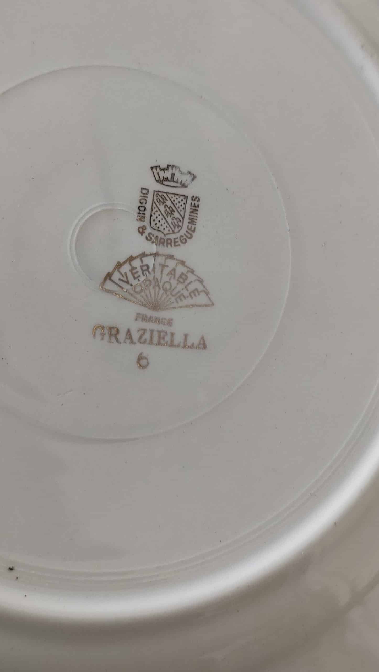 Des pièces en très bel état général, sans brèche. Juste de très très légers manques de dorures sur le liseré parfoisbet une petite marque dans le fond d’une. Cf photos