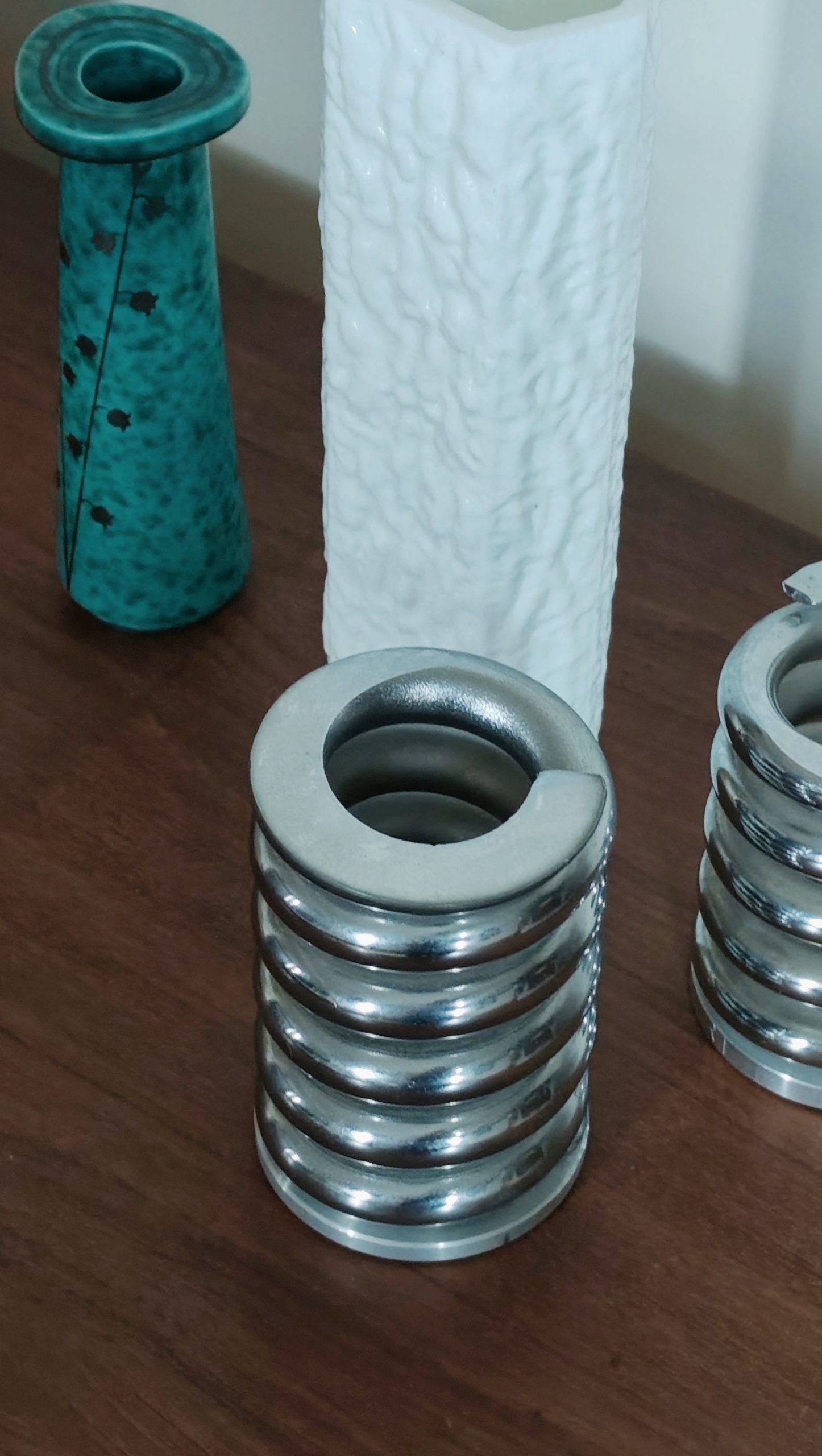 Grand pot porte-stylo « ressort » en acier – Design années 70