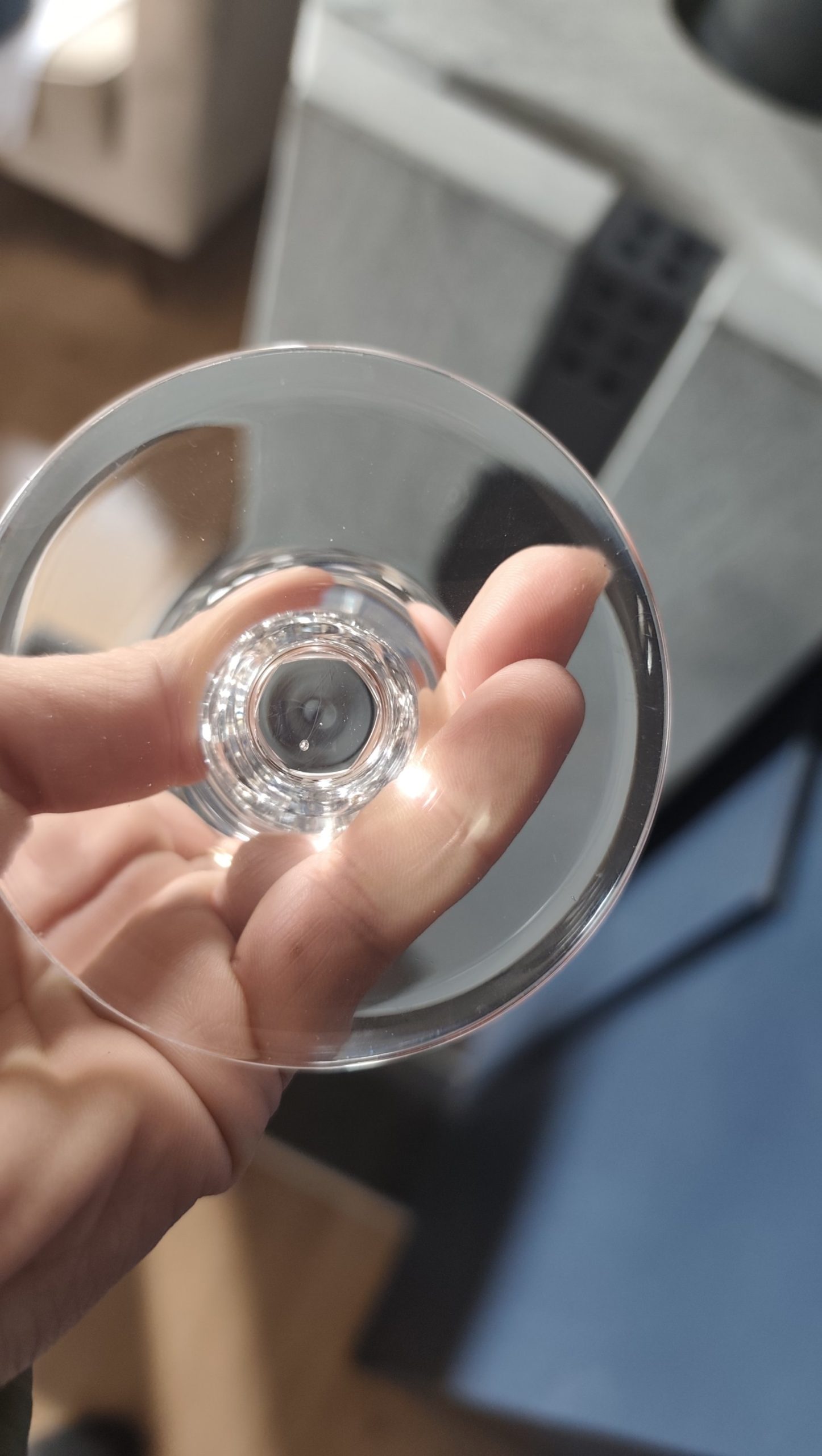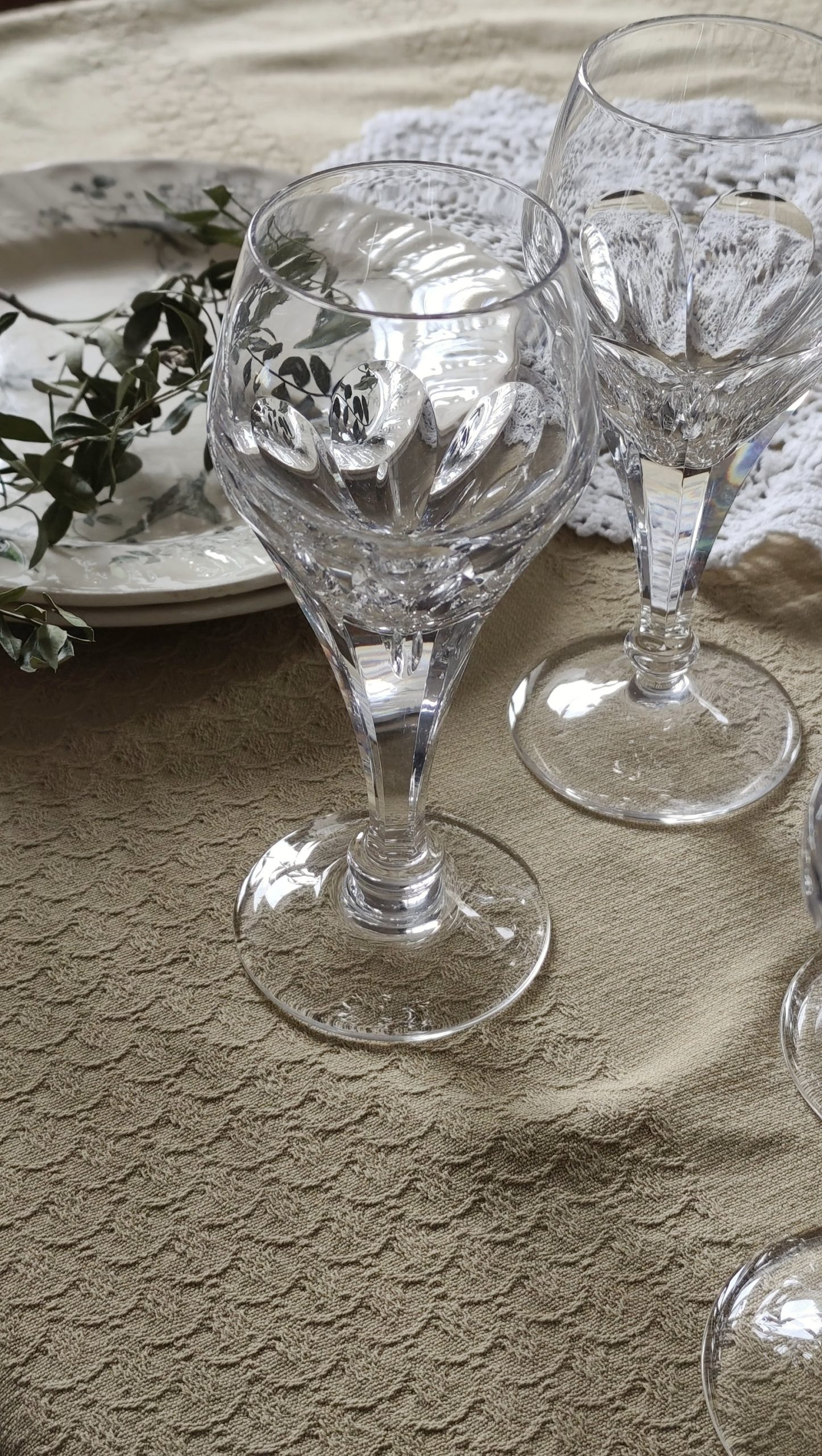 Sublime service de verre à vin en cristal. Qualité incroyable. Ces verres sont l’essence même de l’élégance et de l’intemporalité avec leurs pans coupés descendant jusqu’au pied.
