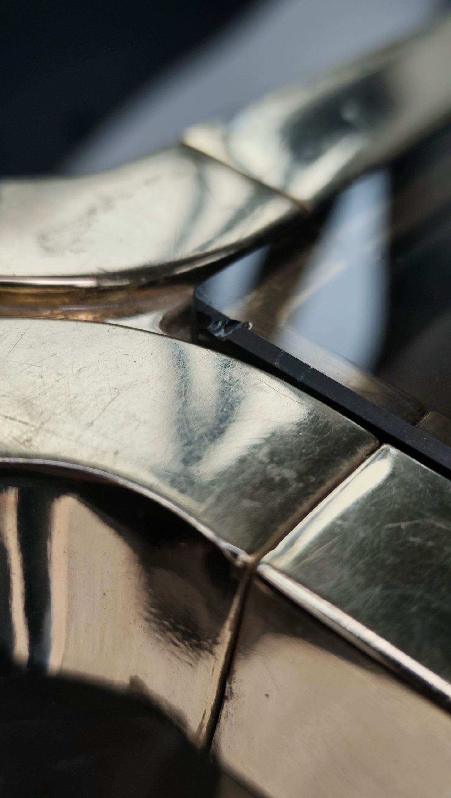Petites traces d’usage à signaler sur le laiton. Minuscule accro sur un coin du verre, visible vraiment qu’en gros plan.